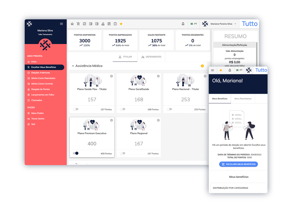 Já para os mais de 400 funcionários, a disponibilização de uma plataforma digital foi fundamental para facilitar a visualização dos benefícios. Ela funciona como um marketplace para escolha de benefícios e utiliza um sistema de pontuação. Cada colaborador tem um número de pontos disponíveis para montar sua cesta. Esses pontos são calculados com base na hierarquia, posição profissional e na média financeira utilizada no mercado.